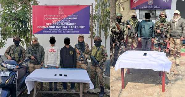 Imphal, Mar 31: Security forces arrested three militants belonging to two proscribed outfits for alleged involvement in extortion activities from Manipur’s Thoubal and Kakching districts, a police statement said on Tuesday.