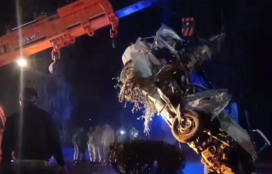 According to the police, the driver lost control of the car, jumped the divider, and collided head-on with the truck.