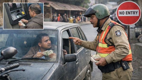 Shillong, Jan 13 : An investigation was ordered after a video went viral, showing that a traffic volunteer in Shillong allegedly forcing a visitor from Assam’s Silchar to cough up Rs 15,000 as “fine” after he drove his car into a no-entry zone.