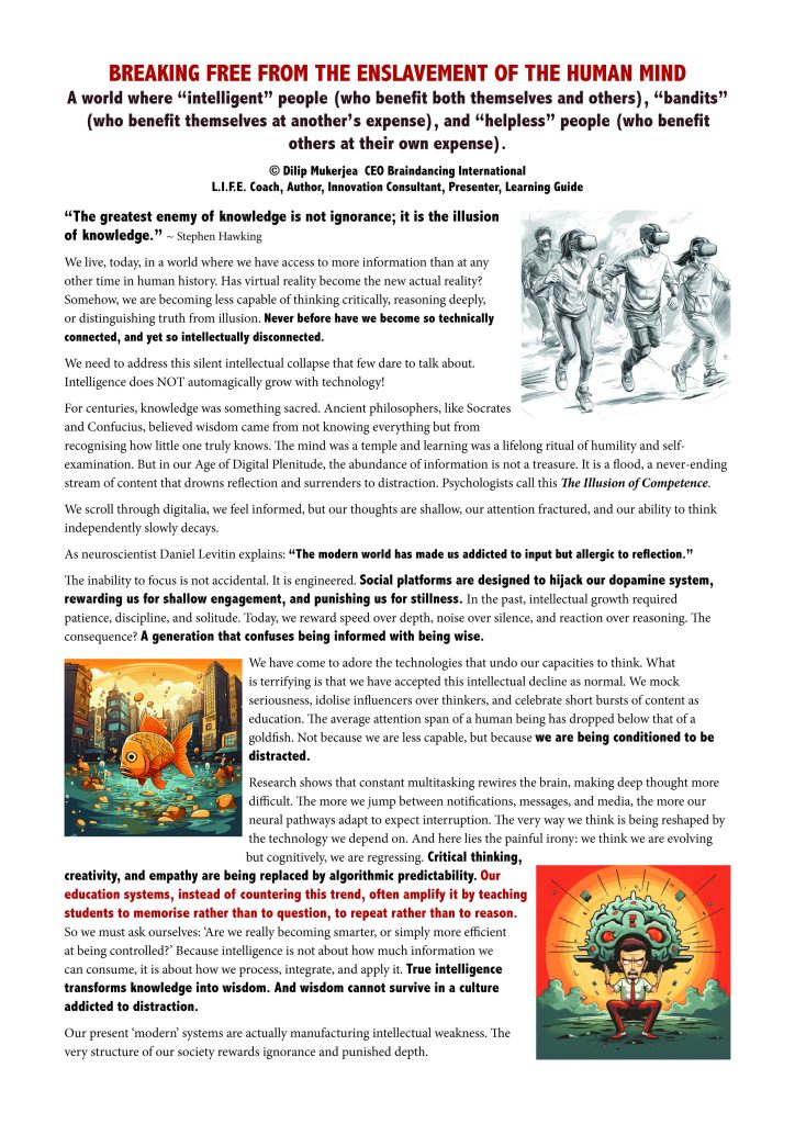 By Dilip Mukerjea, CEO Braindancing Inter national L.I.F.E. Coach, Author, Innovation Consultant, Presenter, Learning Guide