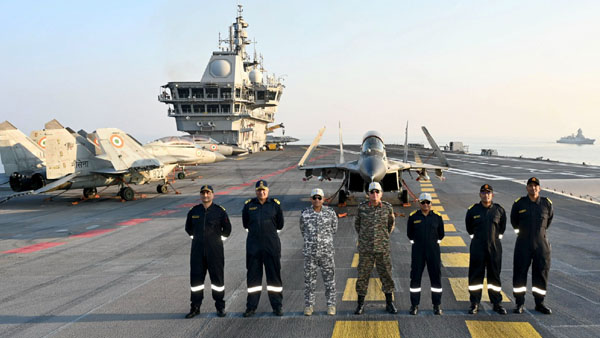 Reflecting the tri-service synergy, the three top commanders in the Indian military had earlier boarded INS Vikrant and reviewed a joint multi-domain operation conducted as part of Exercise Trishul.