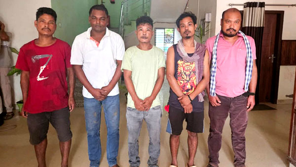 Those arrested have been identified as Maxxpil K Marak and Tronit Sangma, both from Rajabagan, Nongpoh; Bijoy Thangkhiew (45) of Pahamsyiem, Nongpoh; Nur Mahammad alias Ali (36) of Patalikuchi, Barpeta; and Hilbert Sangma (30) of Tandu, Sonapur.