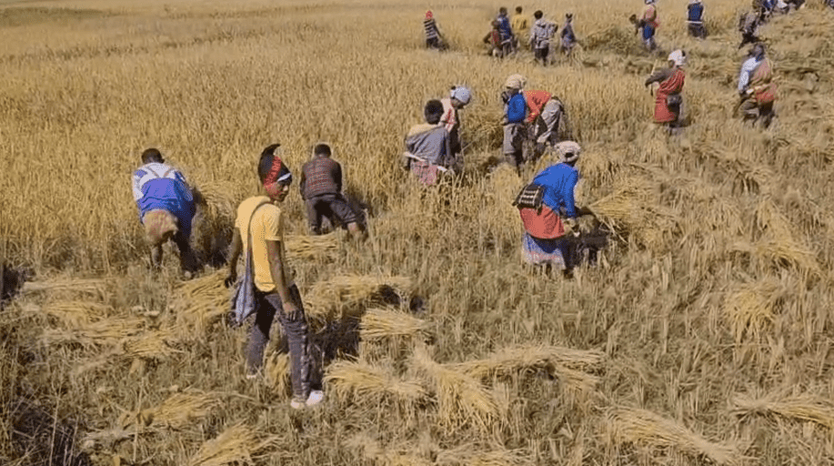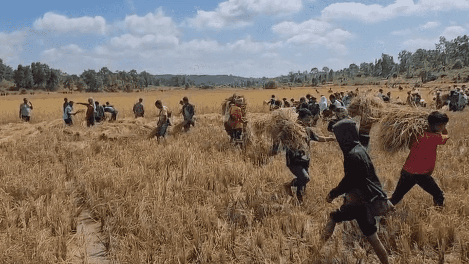 After being informed about positive outcome of the meeting, the villagers accompanied by people from neighbouring villages, proceeded to the fields to resume the harvest.