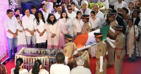 Governor Varma laid a wreath at Bhosle’s mortal remains, which were draped in the national flag and placed in the lobby of her Casa Grand residence in Lower Parel.