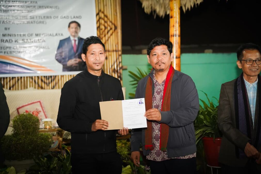 Tura, Feb 10: Fulfilling a long pending demand for land settlement, Chief Minister Conrad K Sangma on Tuesday formally handed over land documents to several families settled in government land for years at Nikwatgre in Tura town.