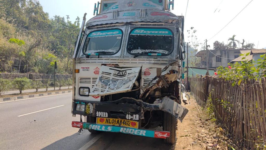 The school bus bearing registration number ML 10 D 5047, belonging to Mount Zion Secondary School, 15 Mile, Byrnihat, was en route to pick up students from 17 Mile when it was hit by a truck carrying clinker with registration number NL 01 AA 4672. The truck reportedly rammed into the bus while maneuvering to unload its cargo.