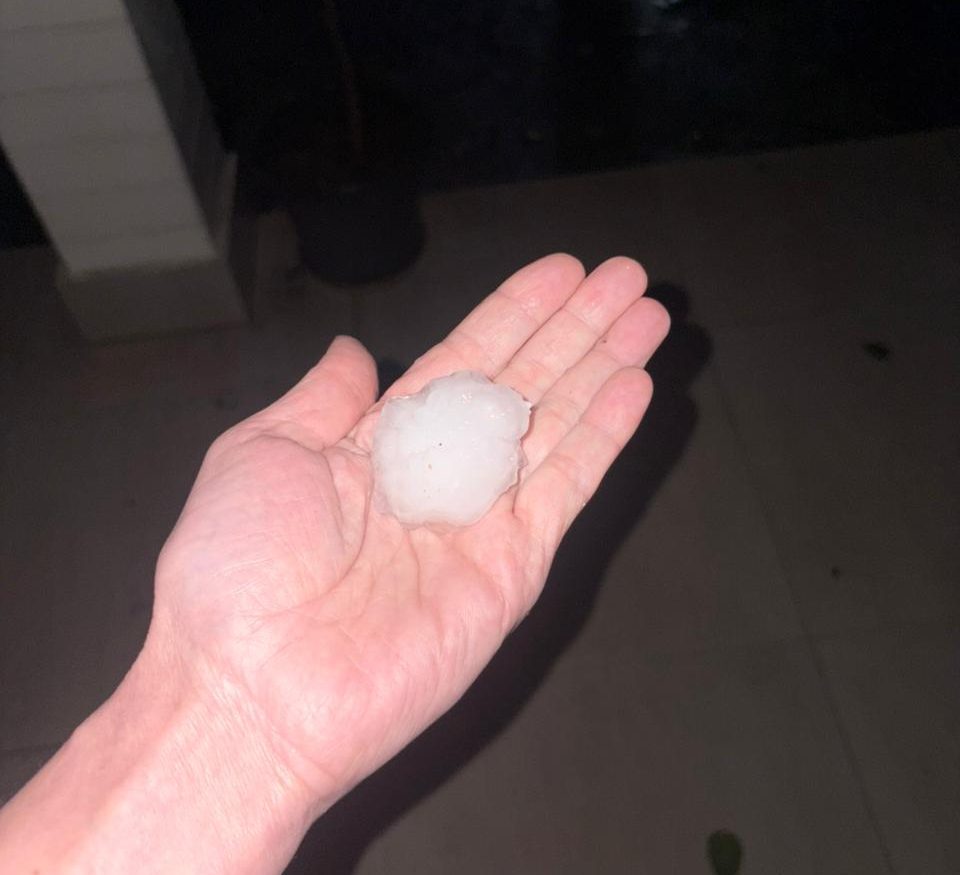 The storm, reported to be the third bout of severe weather during the night, brought unusually large hailstones—some said to be as big as golf balls.