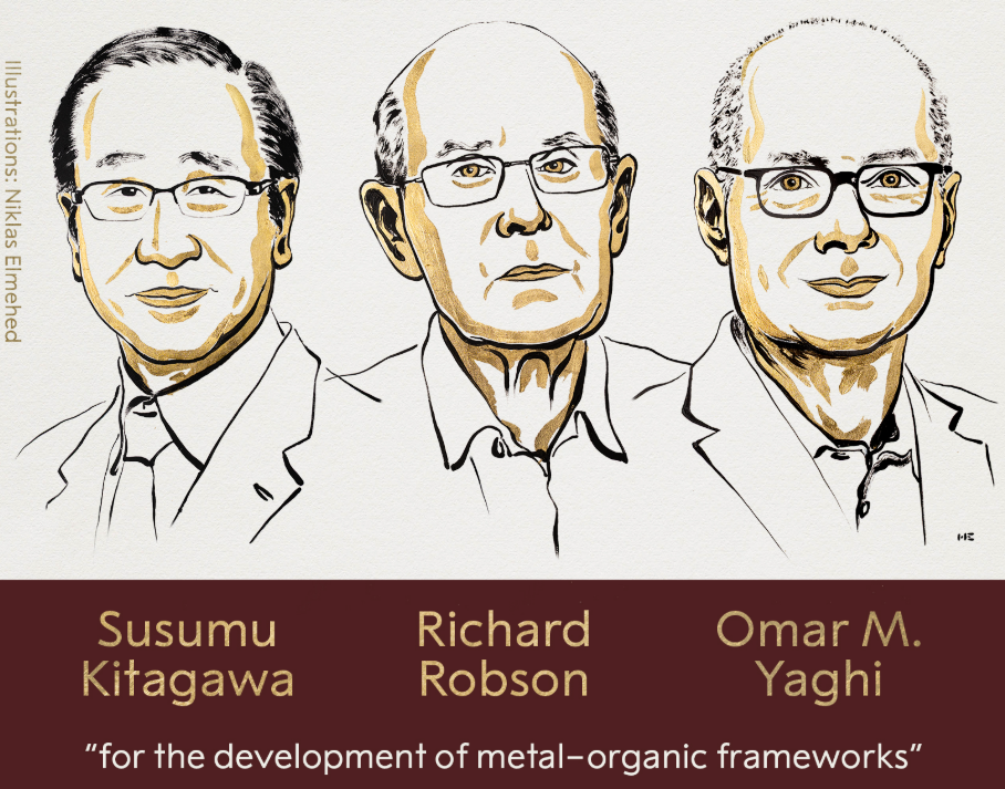 Stockholm, Oct 8: Scientists Susumu Kitagawa, Richard Robson and Omar M Yaghi won the Nobel Prize in chemistry on Wednesday for their work in the development of metal–organic frameworks that dates back to 1989.