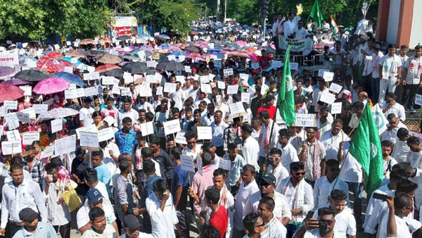 Protesters from across Dibrugarh district marched from four key locations to the Chowkidinghee intersection, leading to major traffic congestion during peak hours.