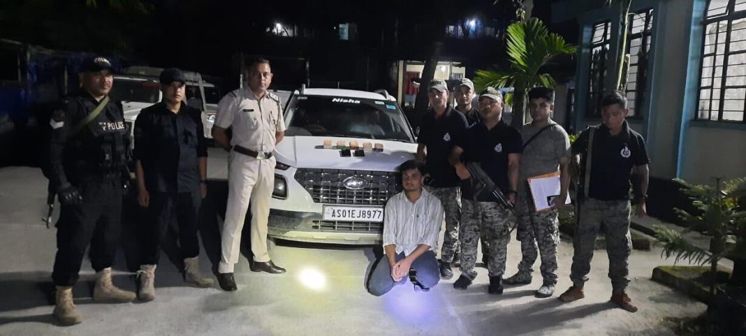 ANTF personnel on Tuesday intercepted a Hyundai Venue car (AS-01 EJ 8977) at a naka of Umkiang outpost and apprehended Abdul Rob Laskar alias Munna (22) from Silchar, Assam.