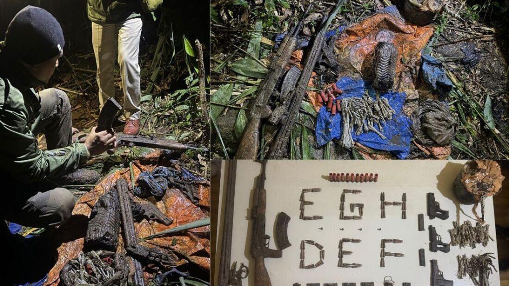 Tura, Jan 26: A substantial number of weapons and explosives hidden inside a forest in East Garo Hills have been unearthed by police on the night of January 25. The weapons are believed to have been buried in the forest by the former militant group GNLA and its ally ULFA.