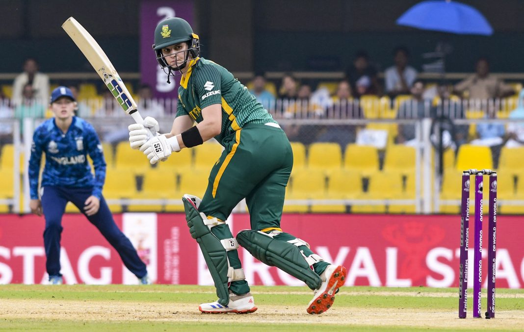 Guwahati, Oct 29: Captain Laura Wolvaardt singlehandedly pushed South Africa to a formidable 319 for seven with an epic 169 off 143 balls in the Women’s ODI Cup semifinal against England here on Wednesday, negating the impact of two mini collapses caused by left-arm spinner Sophie Ecclestone.